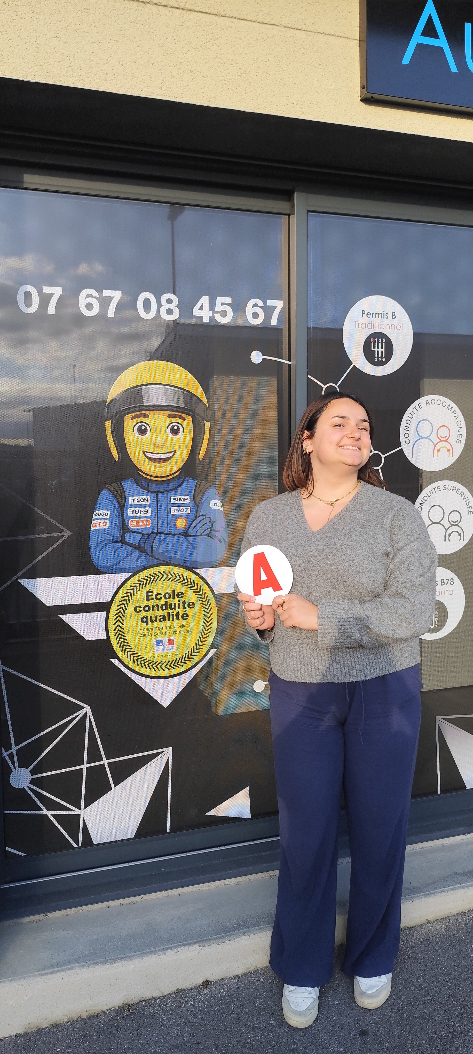 Félicitations à Manon pour la réussite de son permis de conduire sur la région Viennoise. Nous te souhaitons bonne route. Merci pour ta confiance. Passe nous voir quand tu veux.